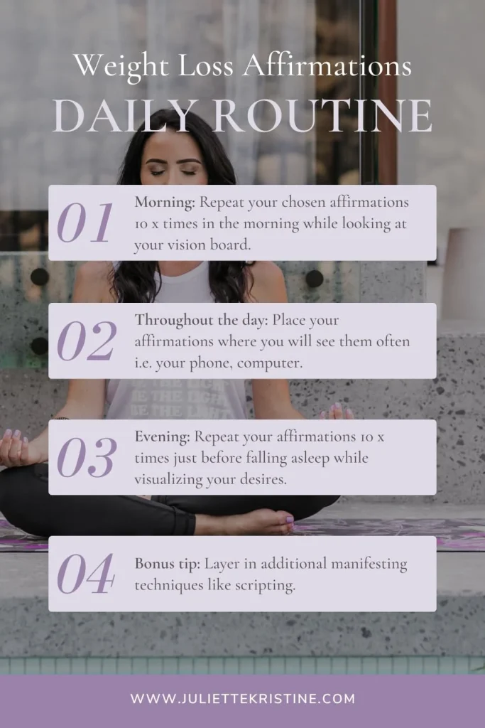 - The optimal times to practice affirmations, such as early morning or before bed, when your mind is most receptive.